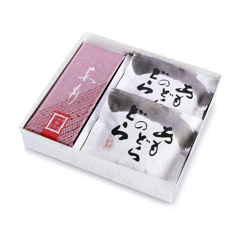代表銘菓「あも」に合うようにしっとりと焼き上げたどらやきの皮「あもどらのどら」の詰合せギフトです。